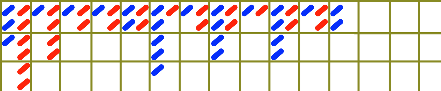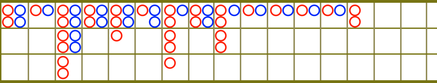 • 齐整,大路当前参照点的前两列(不包括参照点所在的列)的红蓝的个数是否相等。